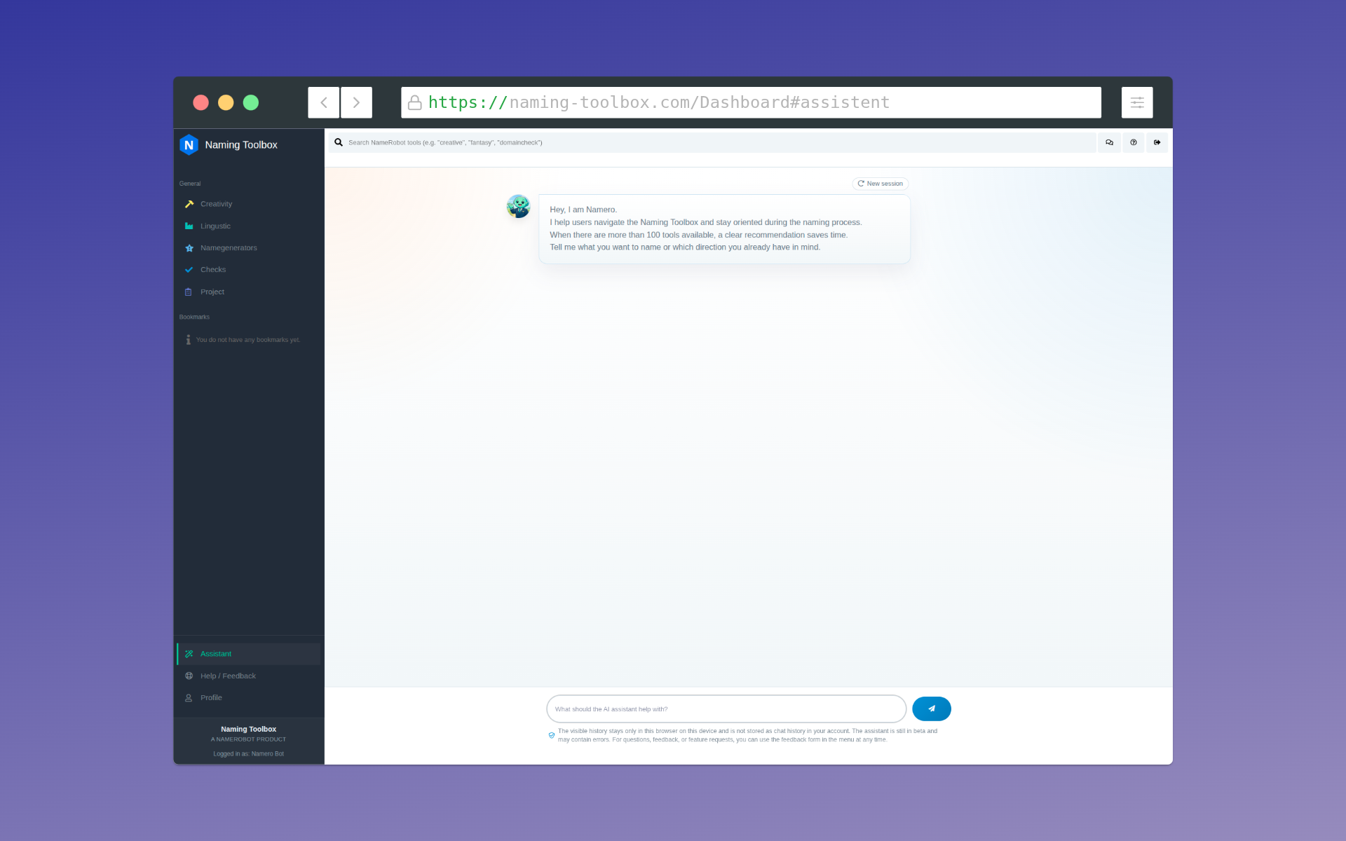Genau hier setzt Namero an. Der neue Assistent hilft dabei, den Tool-Dschungel der Naming Toolbox zu strukturieren und Orientierung zu schaffen. Er kennt die verfügbaren Werkzeuge, versteht ihre Einsatzbereiche und begleitet Nutzer durch die Plattform. Statt sich durch eine große Zahl einzelner Funktionen arbeiten zu müssen, erhalten Nutzer eine geführte Navigation und konkrete Empfehlungen für den nächsten sinnvollen Schritt.