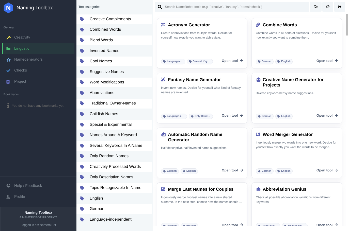 In der Vergangenheit waren manche Begriffe noch zu stark von linguistischem Denken geprägt. Jetzt rücken wir sprachlich näher an das heran, was Nutzer eigentlich tun möchten: Namen finden, Ideen bewerten und mit mehr Klarheit Entscheidungen treffen.